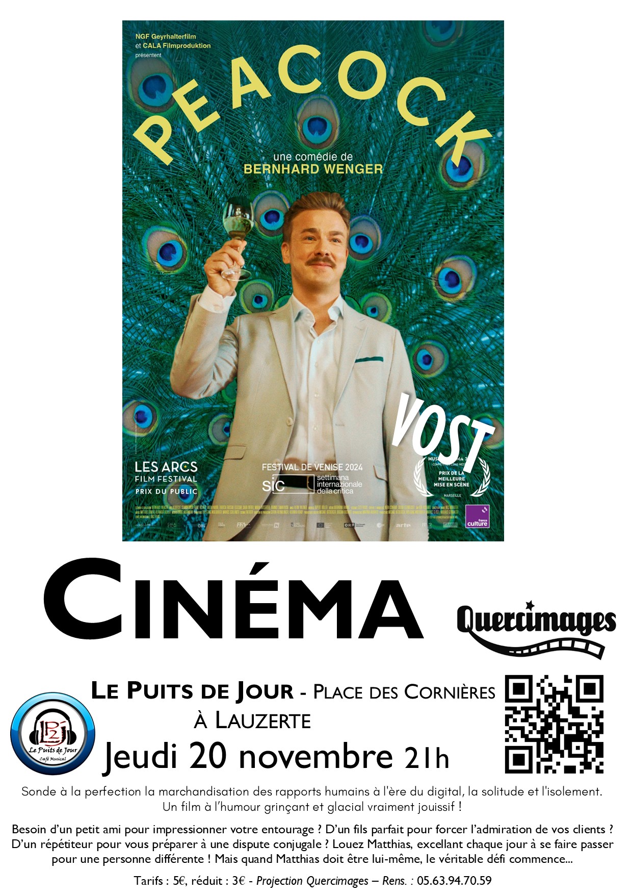 L'association Quercimages vous propose ses séances de cinéma au Puits de Jour les jeudis soir d'octobre à avril, avec une petite pause aux environs des fêtes de fin d'année, les séances débutent à 21h00.