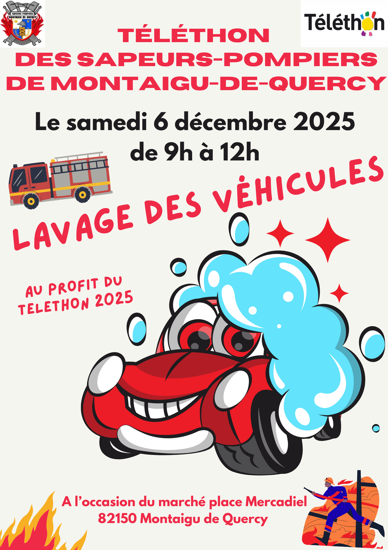 Lavage des véhicules au profit du Téléthon le samedi 06 décembre de 9h à 12h.