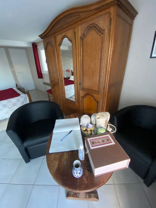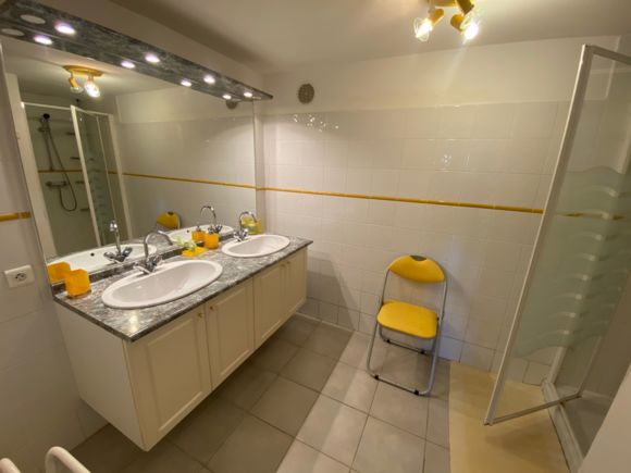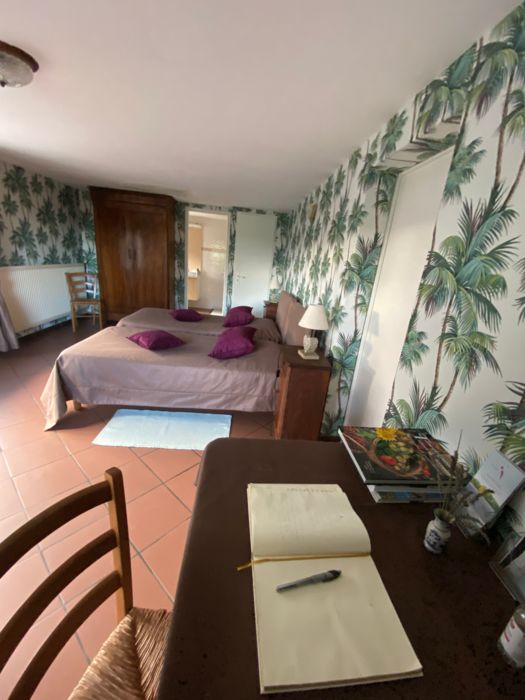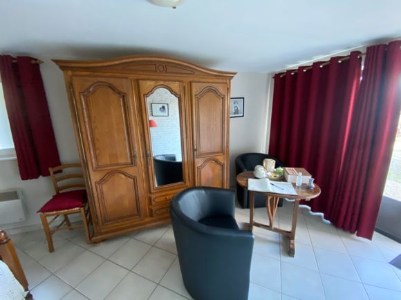 Ground floor of the owner's house, on one level with independent access: 1 bedroom (1 double bed, shower room and separate wc); 1 bedroom (2 single beds, shower room and separate wc). Free wifi internet connection. Kitchen area reserved for guests. On-site 1 gîte rural 3 épis. Pets: 5 E/day. Discount from the 8th night.