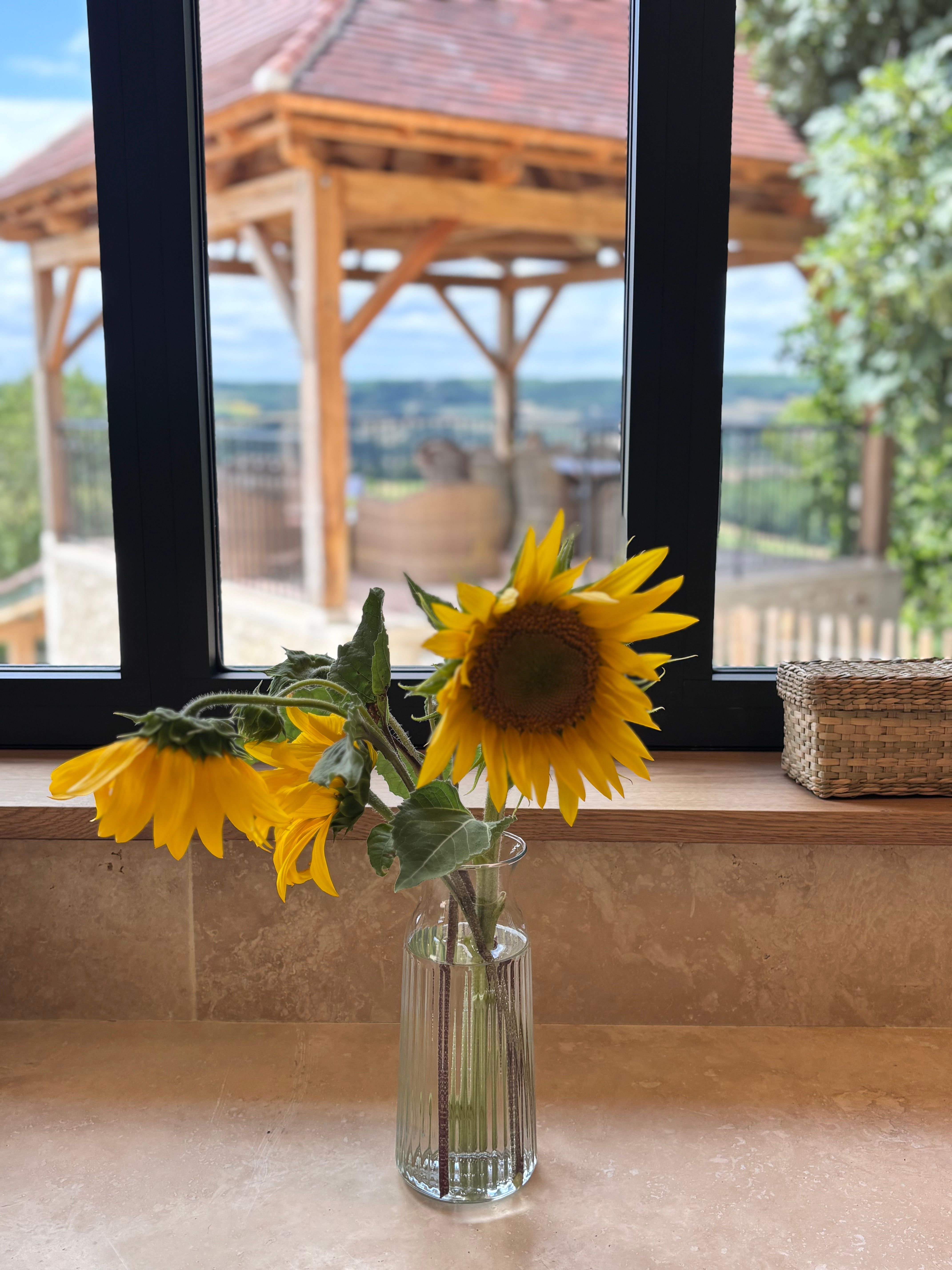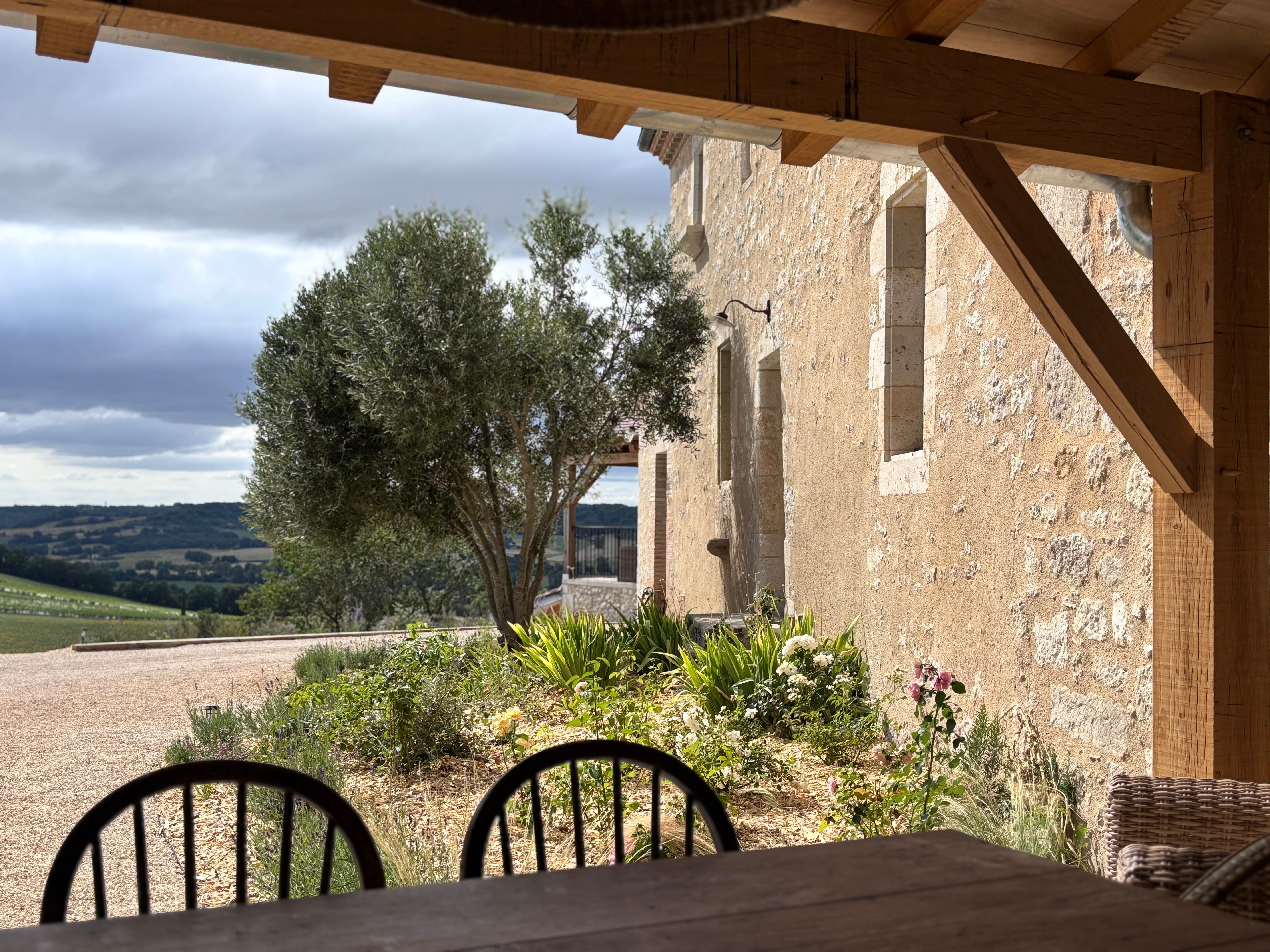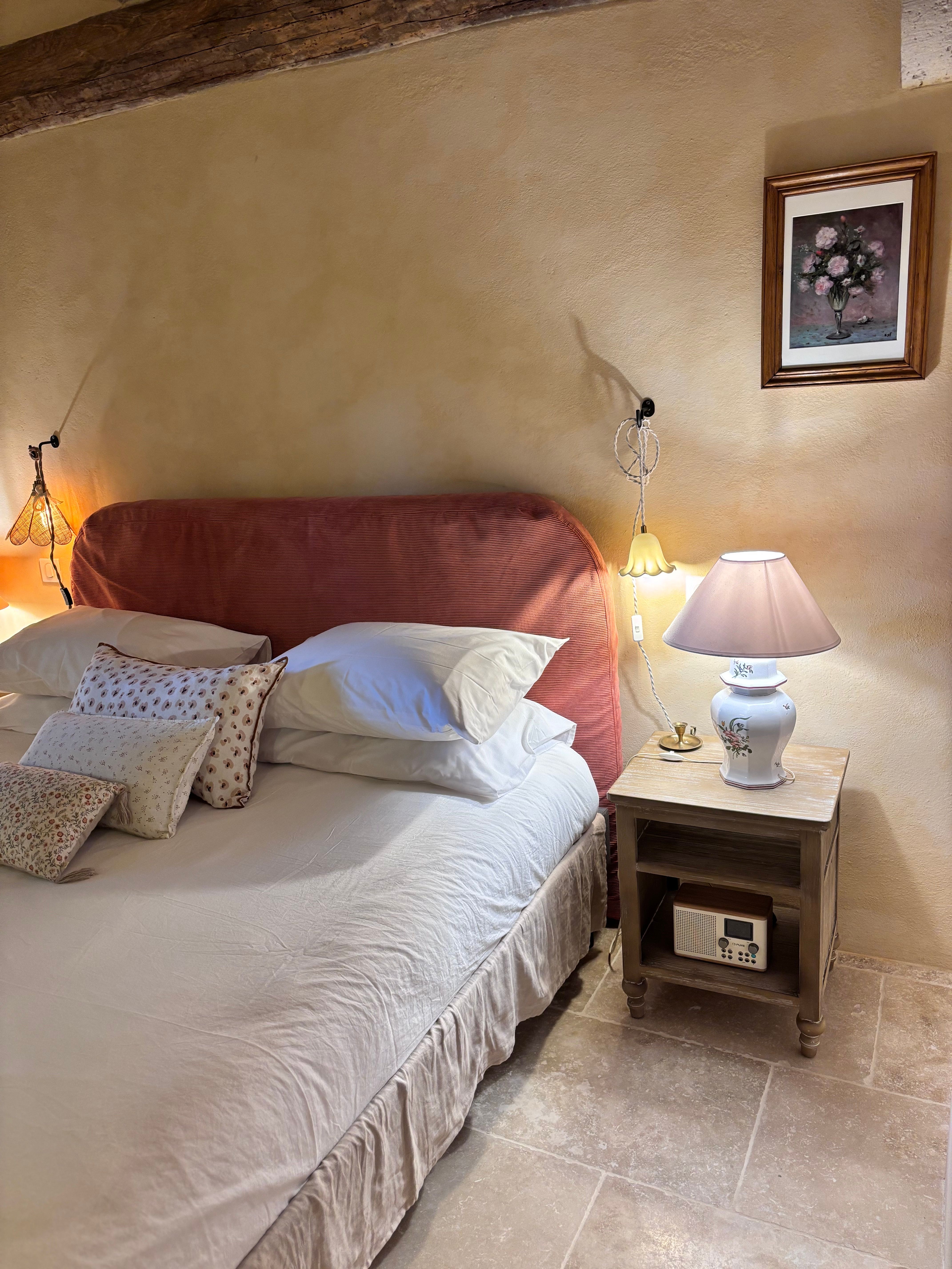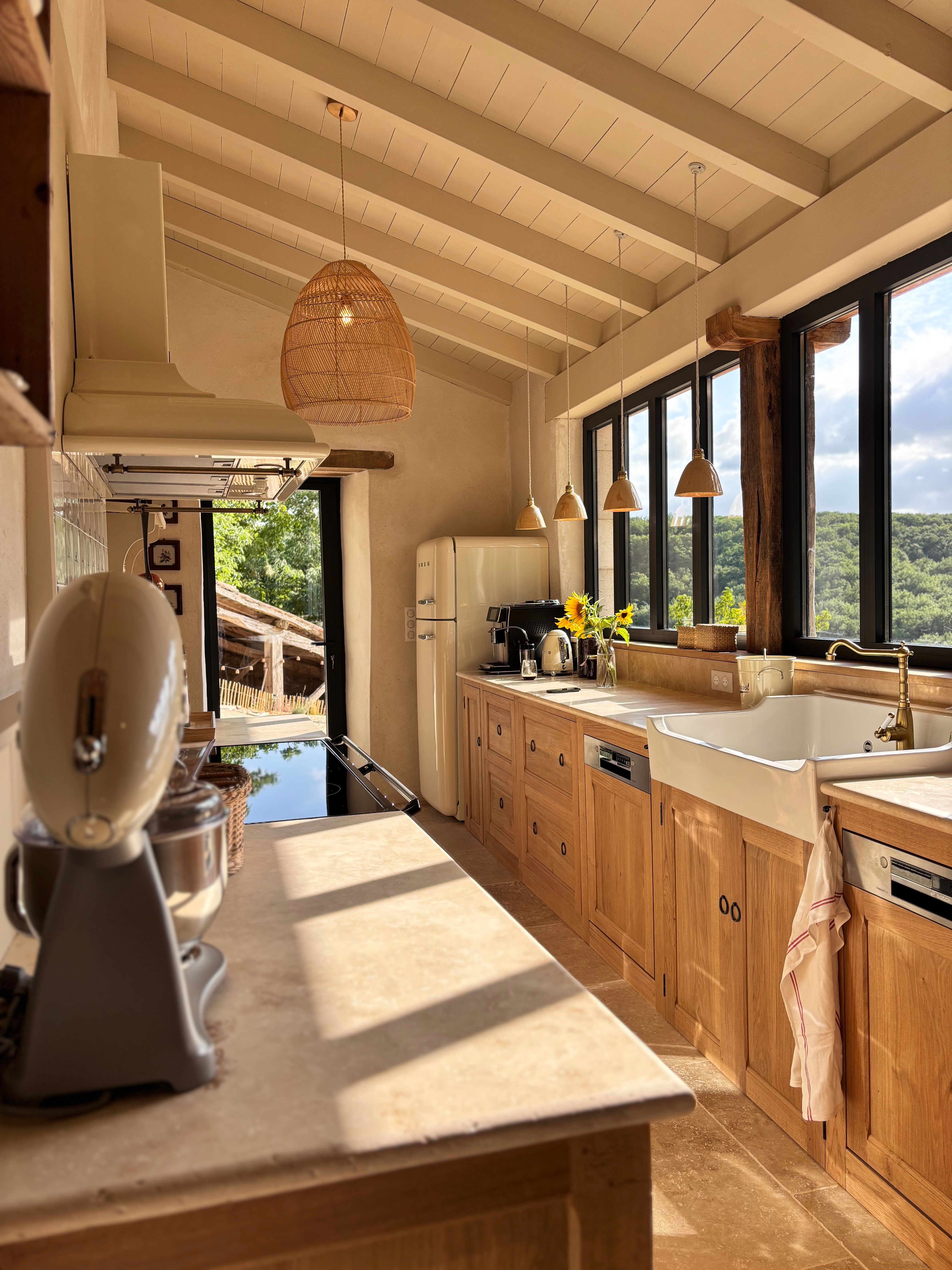 As soon as you enter the front door, you feel the warm atmosphere of the living room with its lounge area (table and chairs, wood-burning stove, armchairs and sofas), then down a step into the bright kitchen with its 3 bay windows (a huge work surface with top-of-the-range equipment (2 dishwashers, kitchen piano with oven, sink, fridge, freezer), and opposite the library with TV and study area. From the entrance hall with its old half-timbering, the master bedroom with 1 double bed (180cm), a shower room and a separate toilet. Off this hallway is a utility room with washing machine, tumble dryer and central steam boiler. On the 1st floor, 3 sublime bedrooms, each with a private shower room and wc. The bedroom with mezzanine for children (desk and games available), 1 bed 180, a large bathroom (central bath and shower) wc. This room has its own private terrace with garden furniture and deckchairs. The green room with 1 bed 180, private shower room and wc and the blue room with 2 beds 0,90 closeable, private shower room and wc. Each room tells its own story, just like each object, whether a family heirloom or a wonderful find. Fully air-conditioned accommodation, bed linen and towels included and beds made up on arrival. Wifi internet access. Outside, covered terrace with barbecue and garden furniture. Another kiosk-style terrace to enjoy the view, with table and chairs and lounge area. Outdoor petanque games. Overflowing swimming pool under construction, to be completed by April 2026. Bicycle hire (road and mountain bikes) available on request.