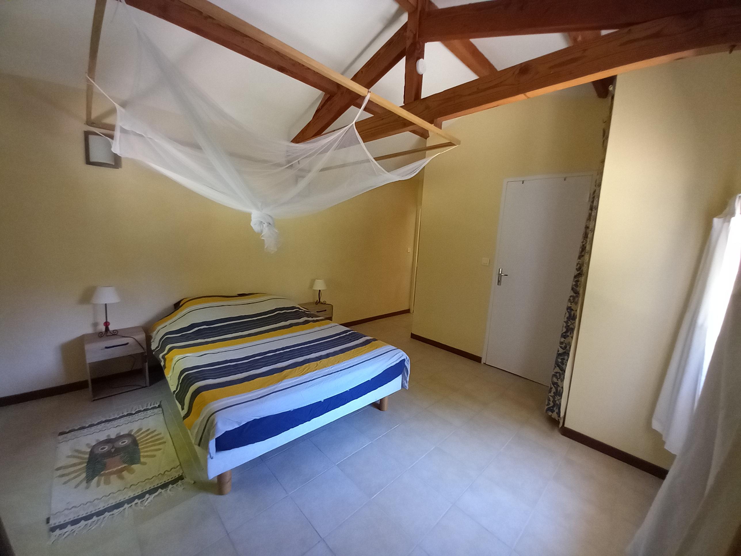 La salle de bain avec douche et WC est attenante à la chambre.
