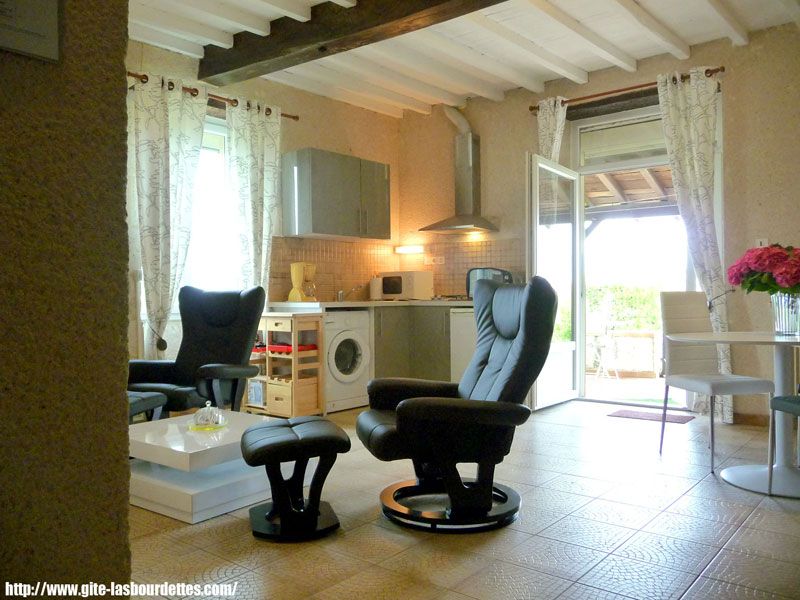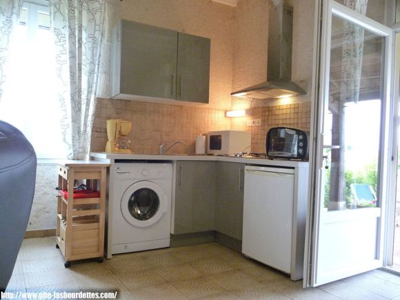 Accommodation comprises: living room with kitchenette (2 armchairs, MO, LL), 1 bedroom (1 double bed + 1 single bed + cot), shower room with walk-in shower and WC. Covered terrace with garden furniture and barbecue. Lawn area. Packed basket on arrival. High chair and cot available. The price includes: sheets, household linen and towels. Pet supplement: 30 Euros per pet/week. Optional extras: cleaning, extra bed, free wifi in the immediate vicinity of the owner's house. Enclosed grounds in front of and around the gîte.