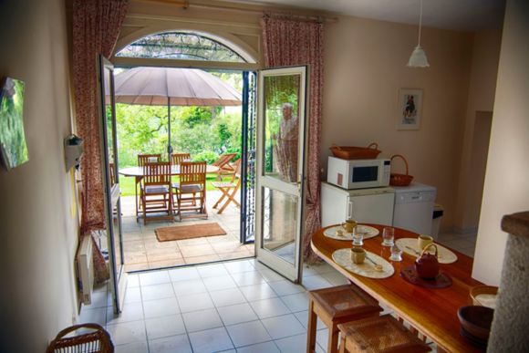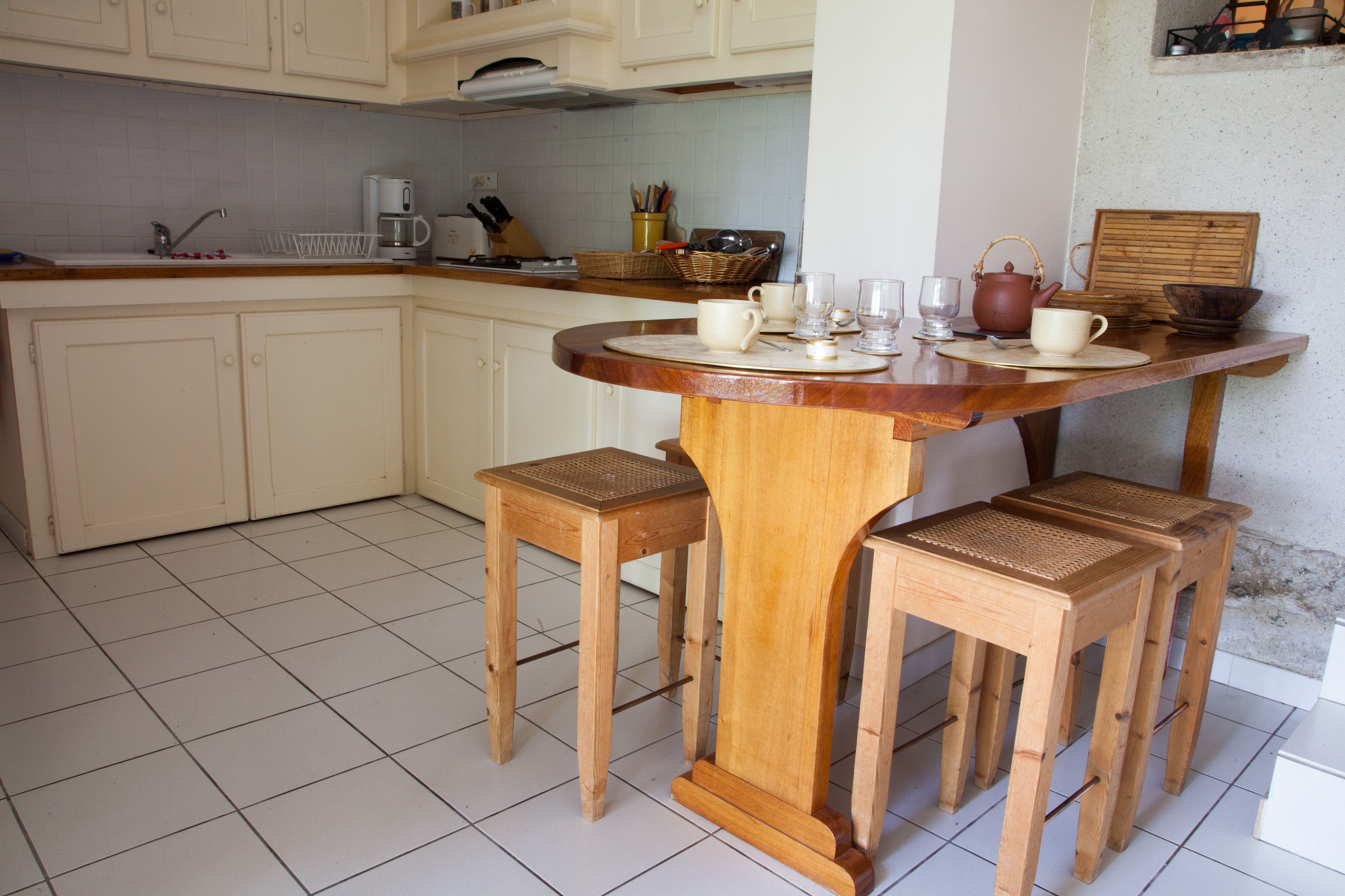 Traditional, detached house. Ground floor: kitchen (microwave oven, LV), living room (lounge, open fireplace), 1 bedroom (1 double bed 160/200 cm) with shower room and WC. 1st floor: 1 bedroom (2 single beds 90/200 cm), 1 study/bedroom (1 single bed 90/190 cm), bathroom (LL), separate WC. Wooded grounds of 1 ha (private), private parking. Terrace with garden furniture, barbecue. Electric heating. Air conditioning. Video library. Price includes: internet access (WiFi). Pet pass (€4.29 per day). Tourist tax not included. Optional: cleaning, sheets and towels.
