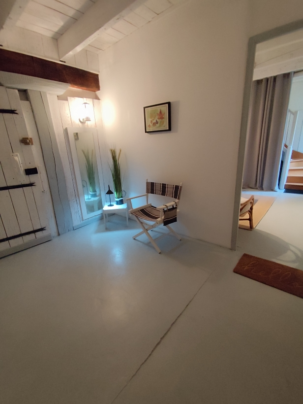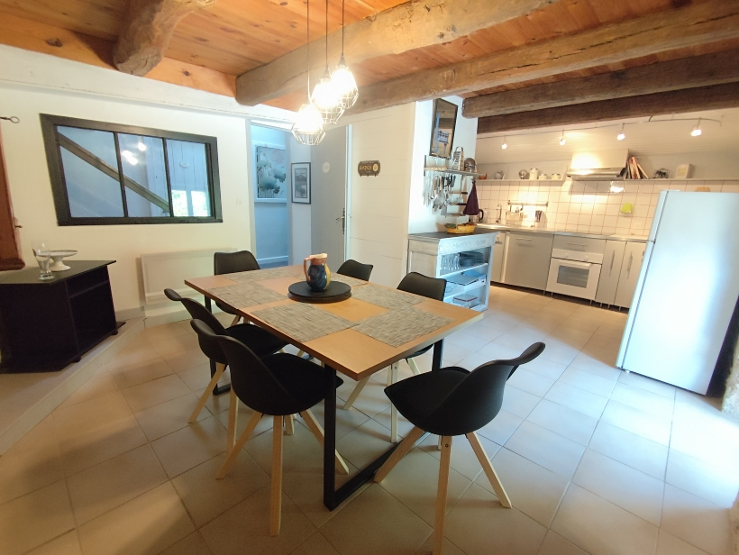 In the heart of the barn a room of about 100m², with a big table of 4 m long, chairs and sofa.