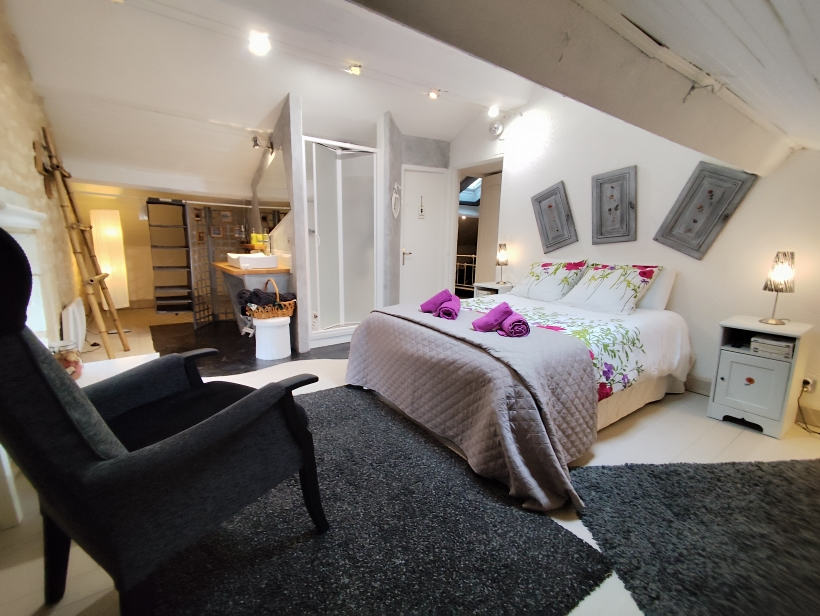 1 suite of 2 rooms: 1 bathroom, Italian shower 150x90, basin and hair dryer. Independent WC. Window opening onto the parking and garden.
