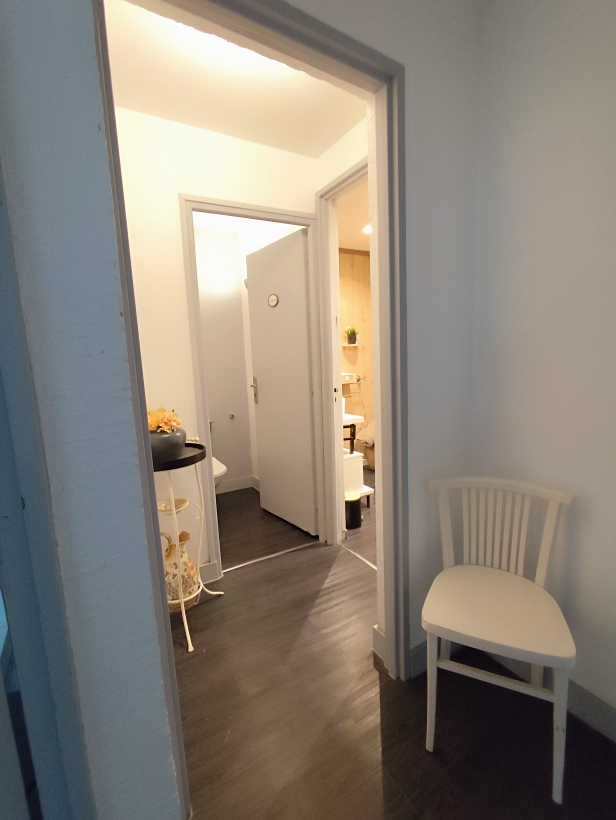 A beautiful private entrance of 14 m², bench, 1 shower and 1 independent WC.