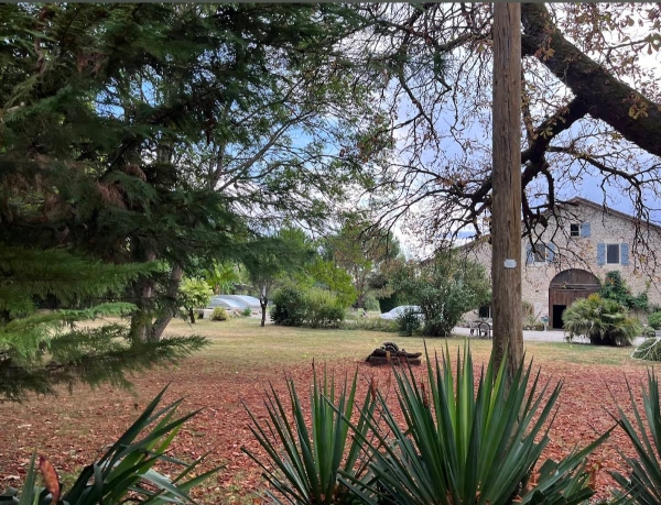 Terrace overlooking the garden and swimming pool. Barbecue, garden furniture, jeu de boules, large communal parking lot, 10 x 5m heated, covered swimming pool for both gîtes. The pool is reserved exclusively for guests renting the gîtes. Set in 1 ha of parkland.