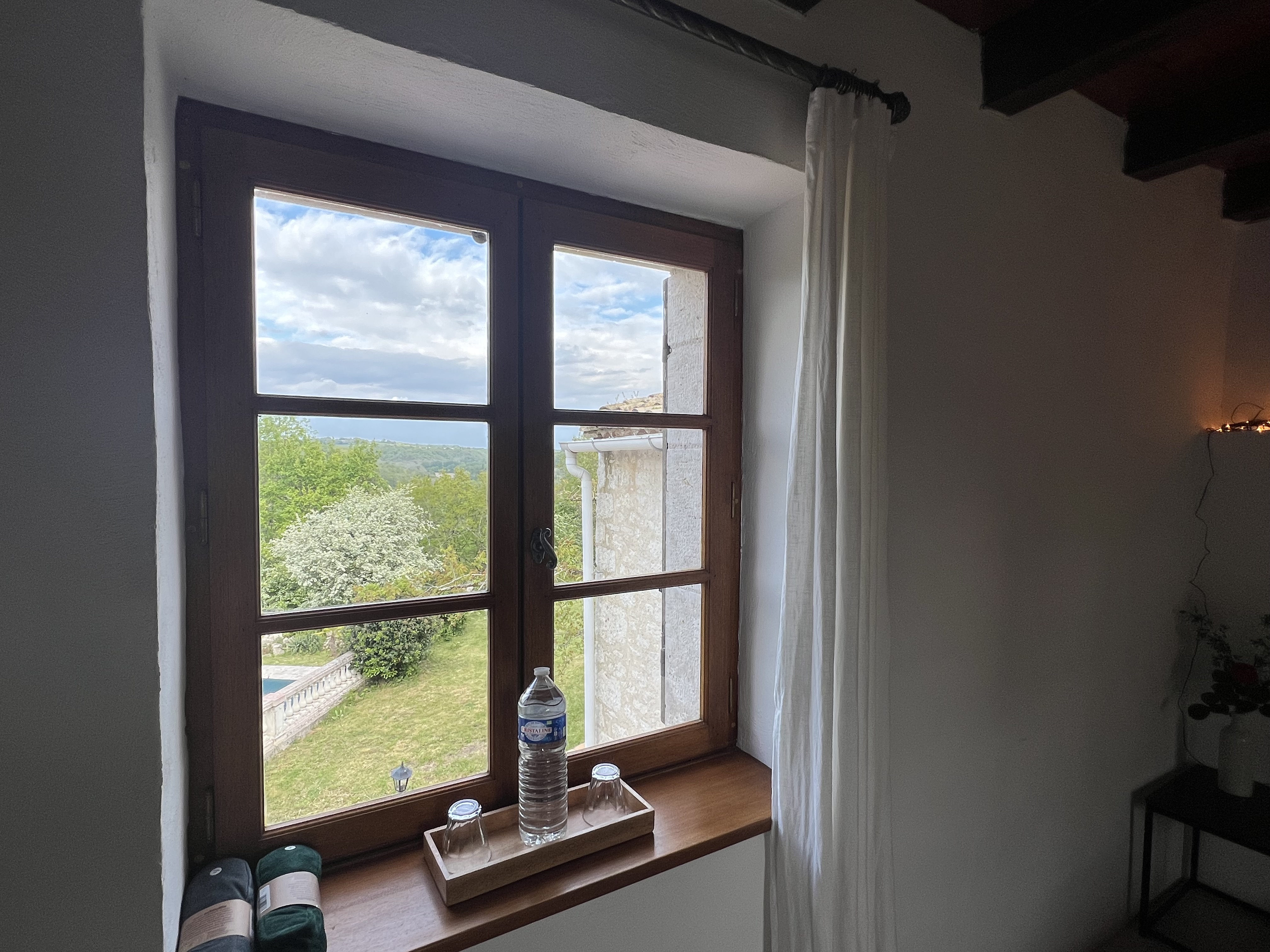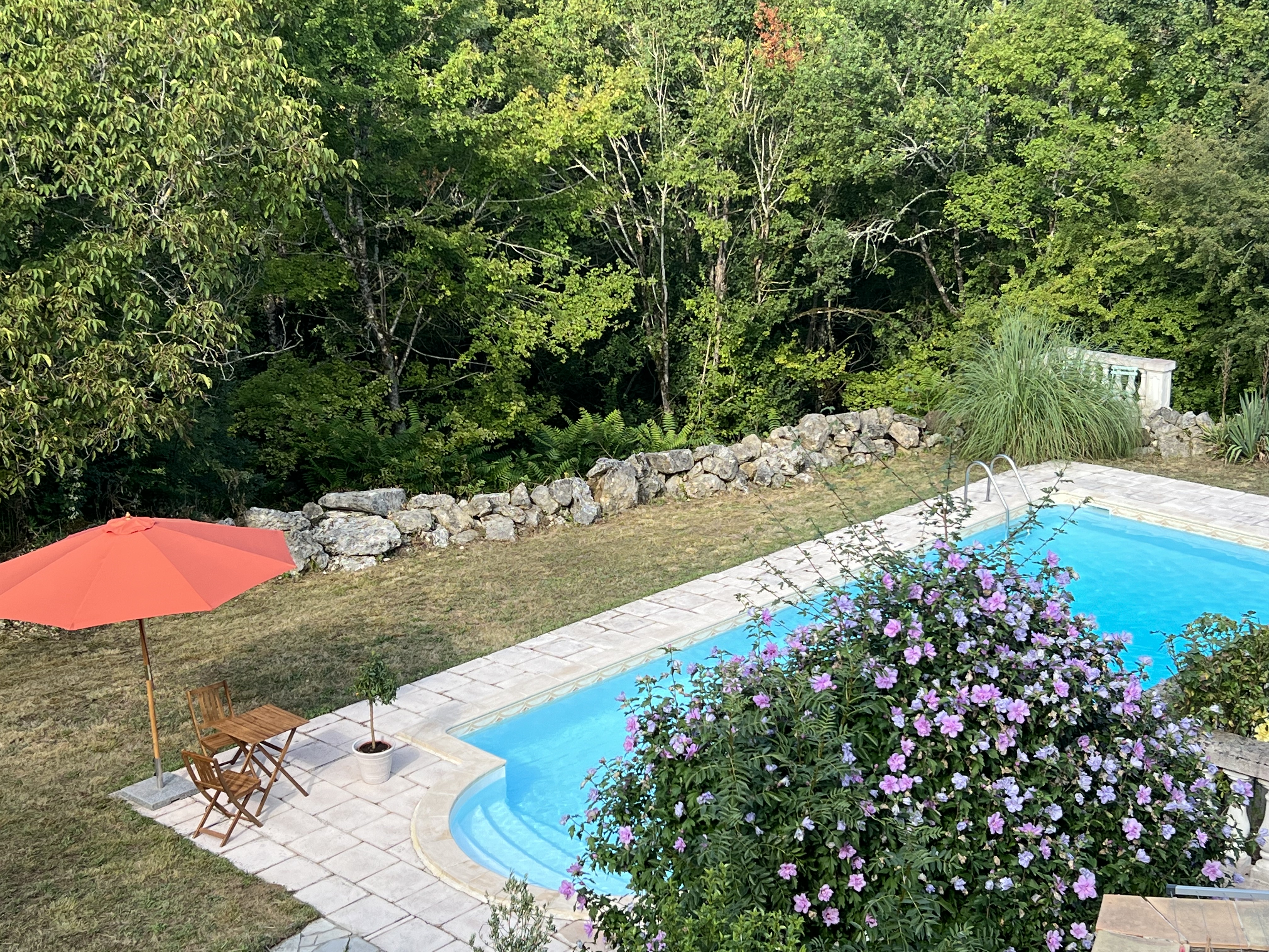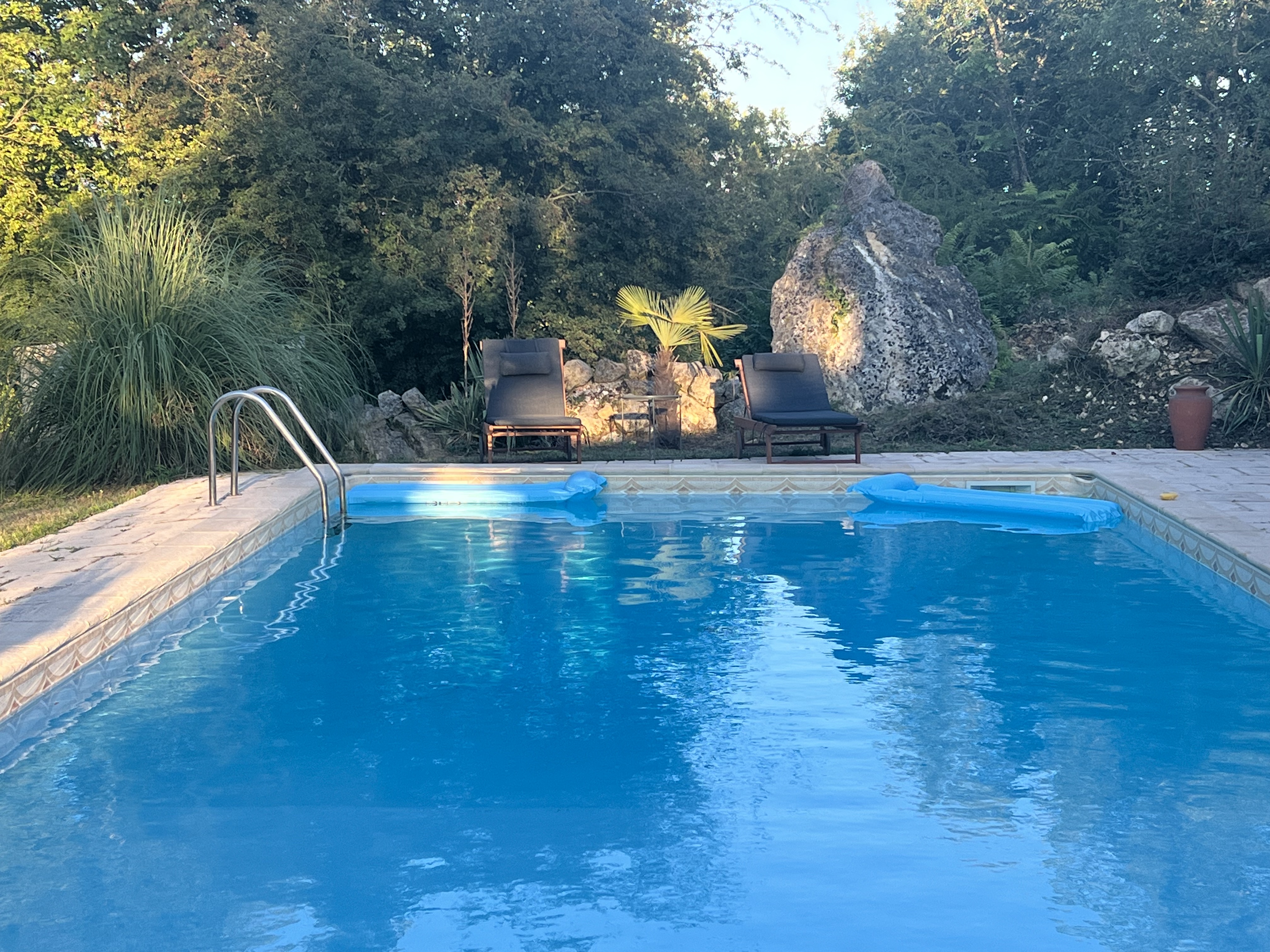 Piscine partagée avec les hôtes.