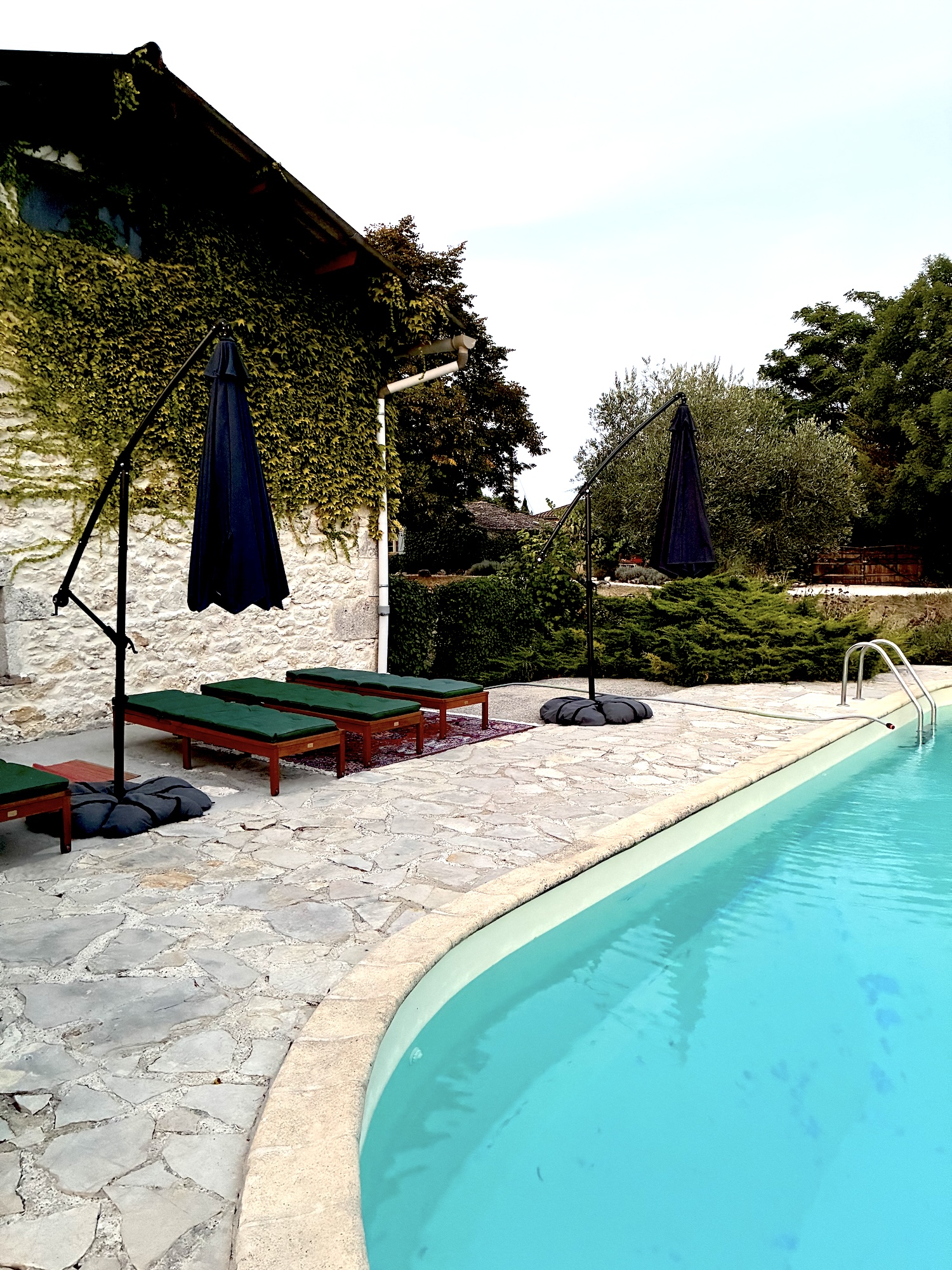 ✓ Piscine partagée avec transats et vue sur la campagne