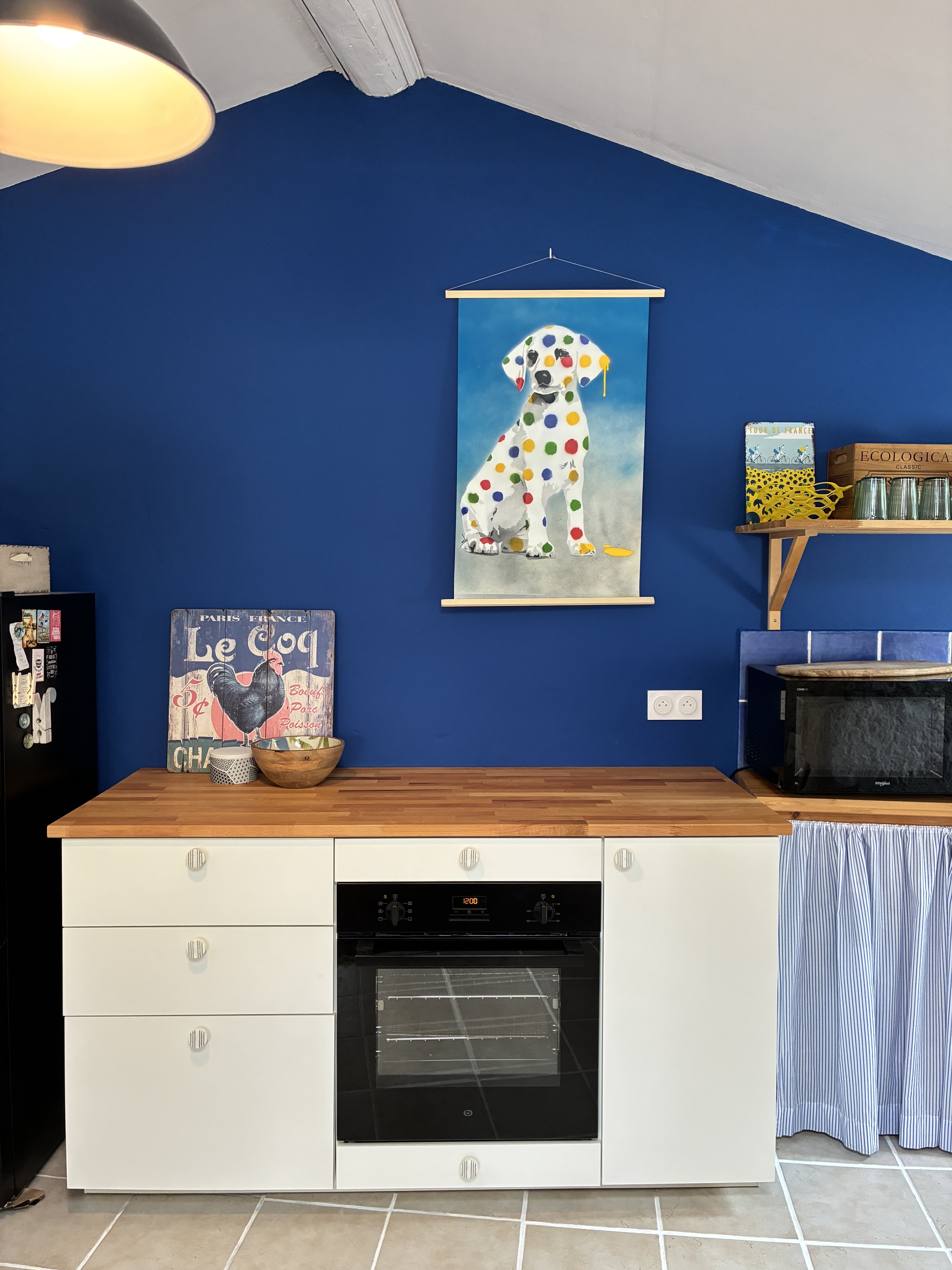 Cette cuisine moderne comprend four électrique, plaque à induction, lave-vaisselle, micro-ondes, hotte, réfrigérateur-congélateur, bouilloire et grille-pain – parfaite pour cuisiner confortablement pendant votre séjour en Occitanie. L’espace ouvert s’étend vers un salon-salle à manger chaleureux et accueillant.