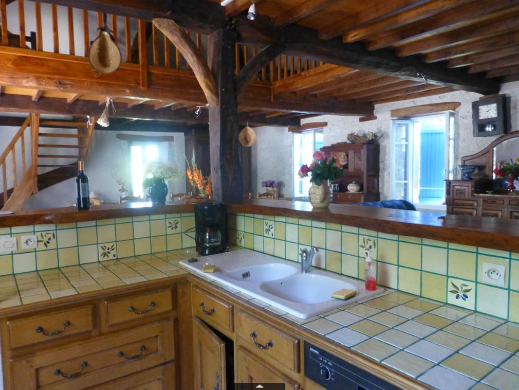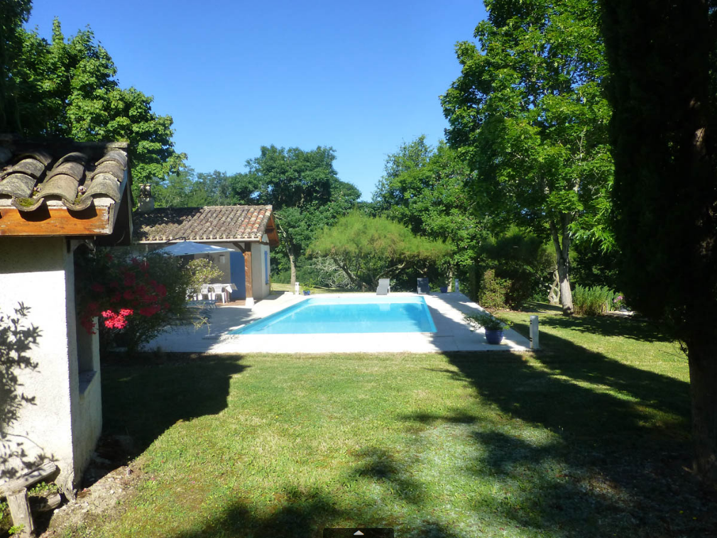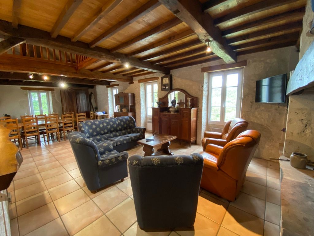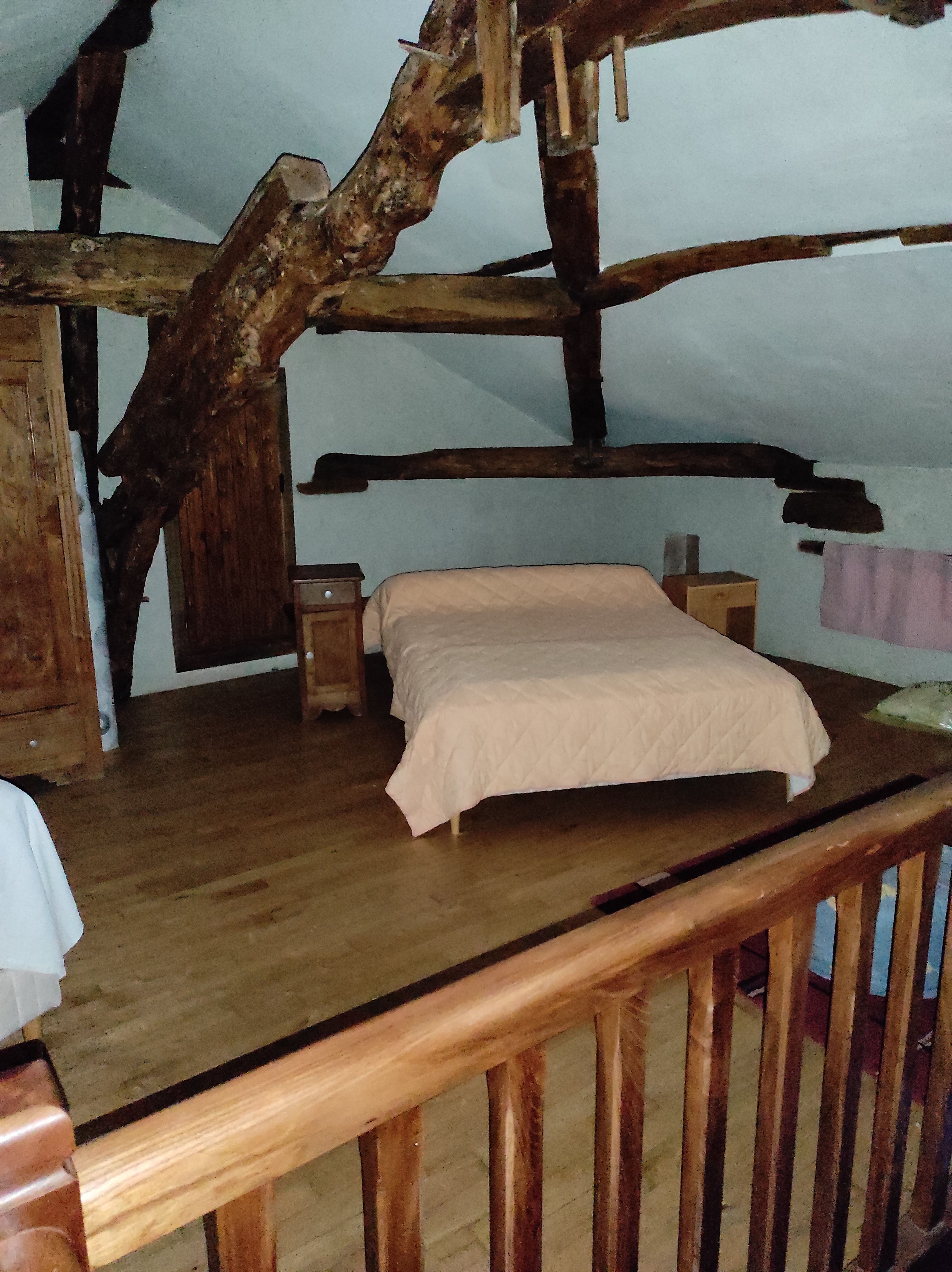 The ground floor comprises a large living room with dining area, sitting area and kitchen area (hob, fridge, microwave, dishwasher), large table and chairs, sitting area with fireplace (armchairs and sofa, TV). A corridor leads to 3 bedrooms: 2 bedrooms (each with 1 double bed), 1 bedroom (2 single beds), 1 shower room and a separate toilet. Mezzanine (1 bed 140); Large terrace in front of the house. Swimming pool (11x5x0.90x2m, depth for diving 2m). Pool house with barbecue and fridge, shower room with wc). Garden furniture, tables, chairs and sun loungers. Wifi in the accommodation. Bed linen, towels and household linen included in the price. Games room with table tennis. Wooded grounds surrounding the gîte and not overlooked.