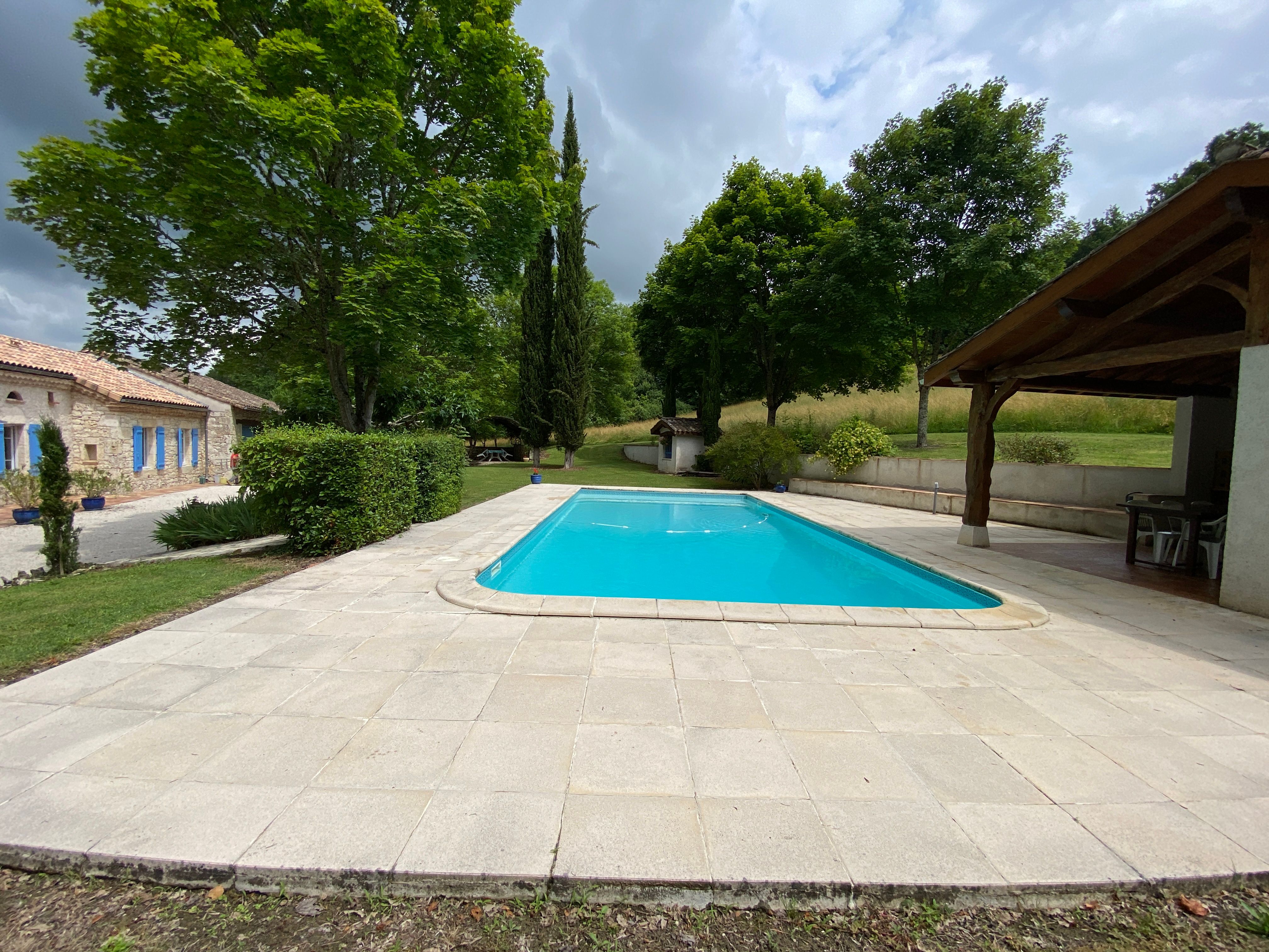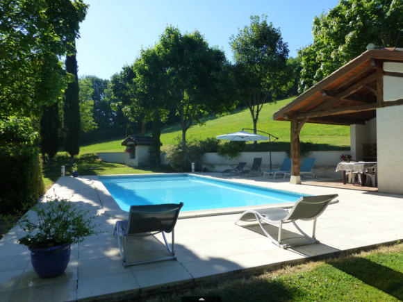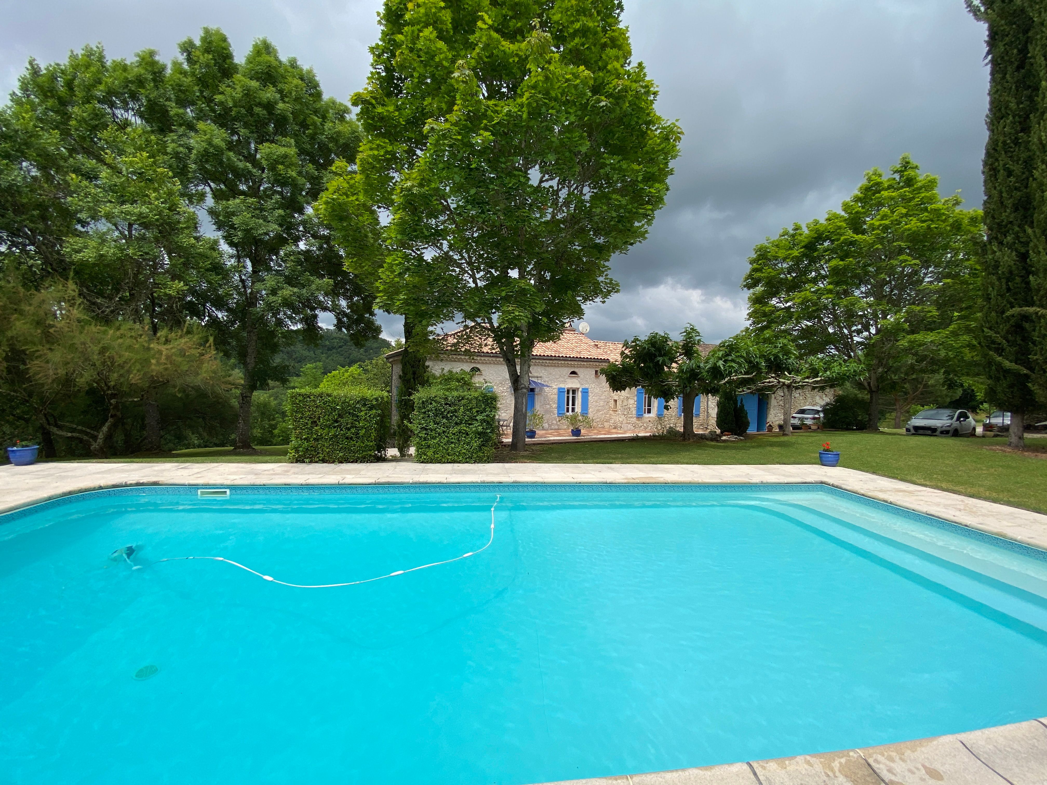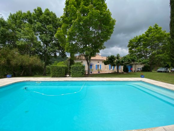 The ground floor comprises a large living room with dining area, sitting area and kitchen area (hob, fridge, microwave, dishwasher), large table and chairs, sitting area with fireplace (armchairs and sofa, TV). A corridor leads to 3 bedrooms: 2 bedrooms (each with 1 double bed), 1 bedroom (2 single beds), 1 shower room and a separate toilet. Mezzanine (1 bed 140); Large terrace in front of the house. Swimming pool (11x5x0.90x2m, depth for diving 2m). Pool house with barbecue and fridge, shower room with wc). Garden furniture, tables, chairs and sun loungers. Wifi in the accommodation. Bed linen, towels and household linen included in the price. Games room with table tennis. Wooded grounds surrounding the gîte and not overlooked.