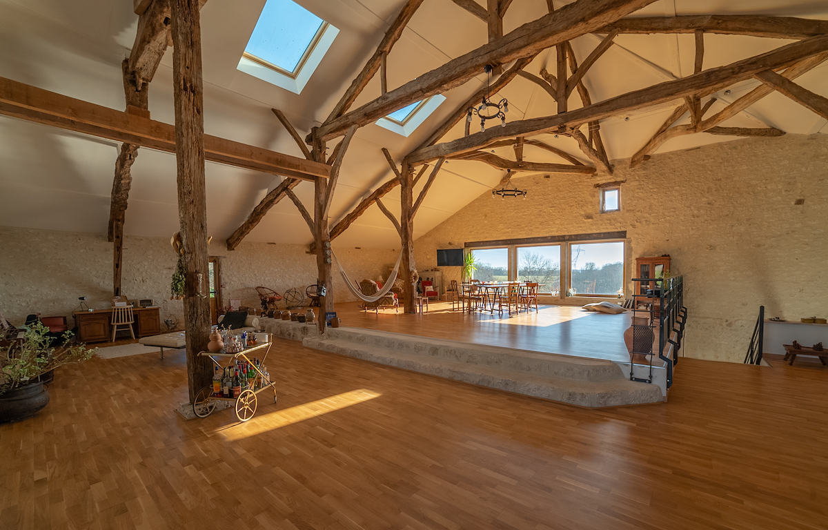 La grande grange ouverte est votre principal espace de vie. Répartie sur plusieurs niveaux, elle comprend :