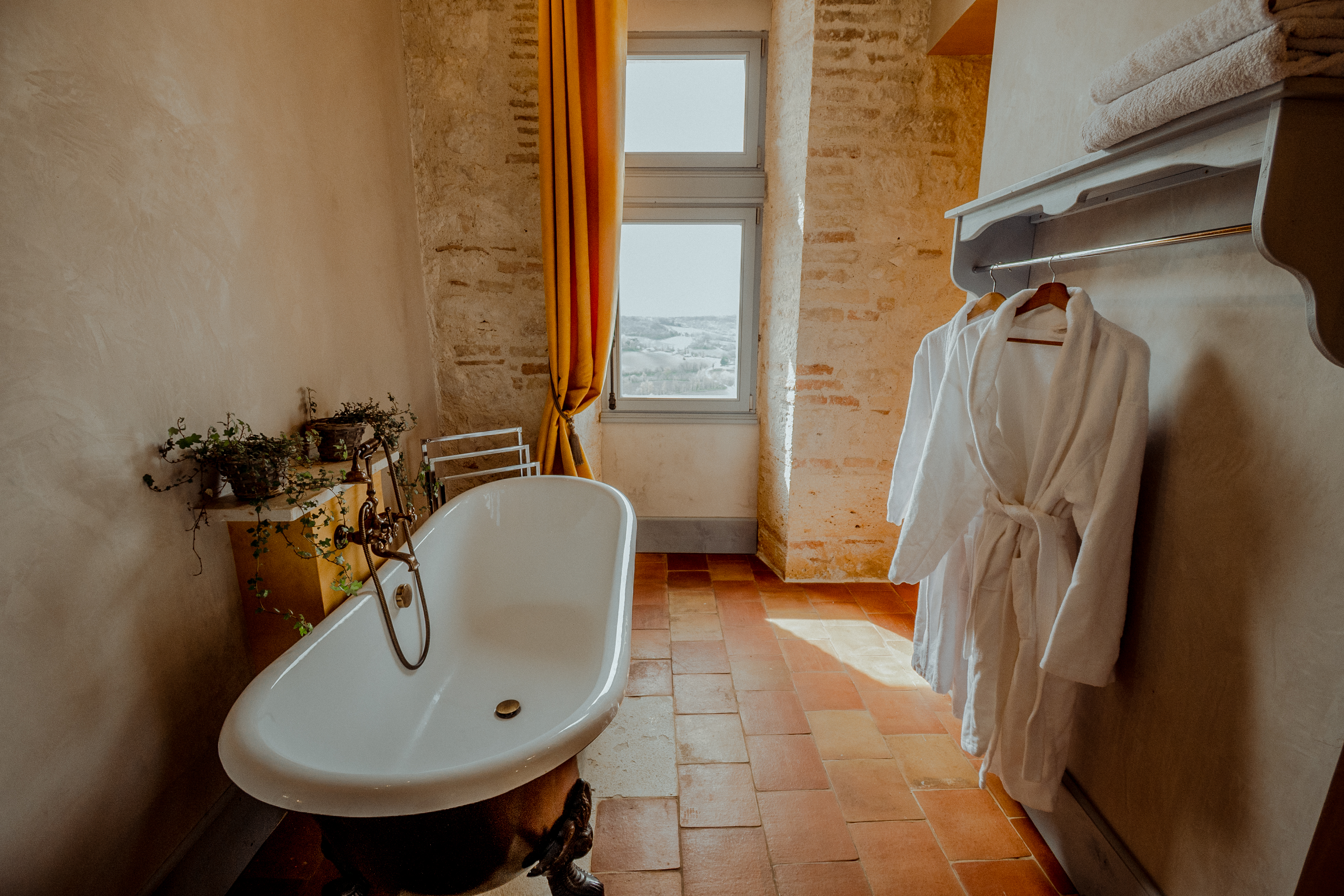 Au rez-de-chaussée, vous trouverez une chambre avec lit simple et une grande chambre double avec une cheminée ancienne, qui s’ouvre sur la nature environnante. La vaste salle de bain allie confort et modernité avec sa baignoire, sa douche à l’italienne, une grande vasque et des toilettes séparées.