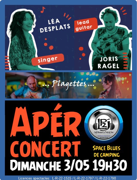 Le groupe PLAGETTES propose une musique colorée, qui puise son essence dans la tradition du jazz et du blues, et joue à l'équilibriste sur ses frontières. Chaque morceau est empreint d'une tendre délicatesse, mais surprend par les échanges tantôt explosifs, tantôt complices entre Joris Ragel (guitare et percussions) et Léa Desplats (voix), révélant une alchimie musicale et humaine exceptionnelle.