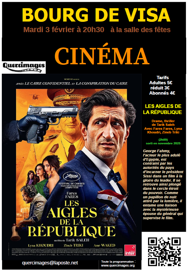 L'avis du comité de sélection de Quercimages: « Les Aigles de la République » marque la conclusion de la trilogie de Tarik Saleh après « Le Caire confidentiel » et « La conspiration du Caire ». Sous l'humour corrosif, cette comédie satirique brillante, cynique mais profondément humaine vire au thriller politique oppressant et montre l'instrumentalisation de l'art par un gouvernement autocratique. Cette œuvre puissante et fulgurante déconstruit avec brio la mécanique du pouvoir dictatorial en Egypte et interroge la puissance politique du cinéma.
