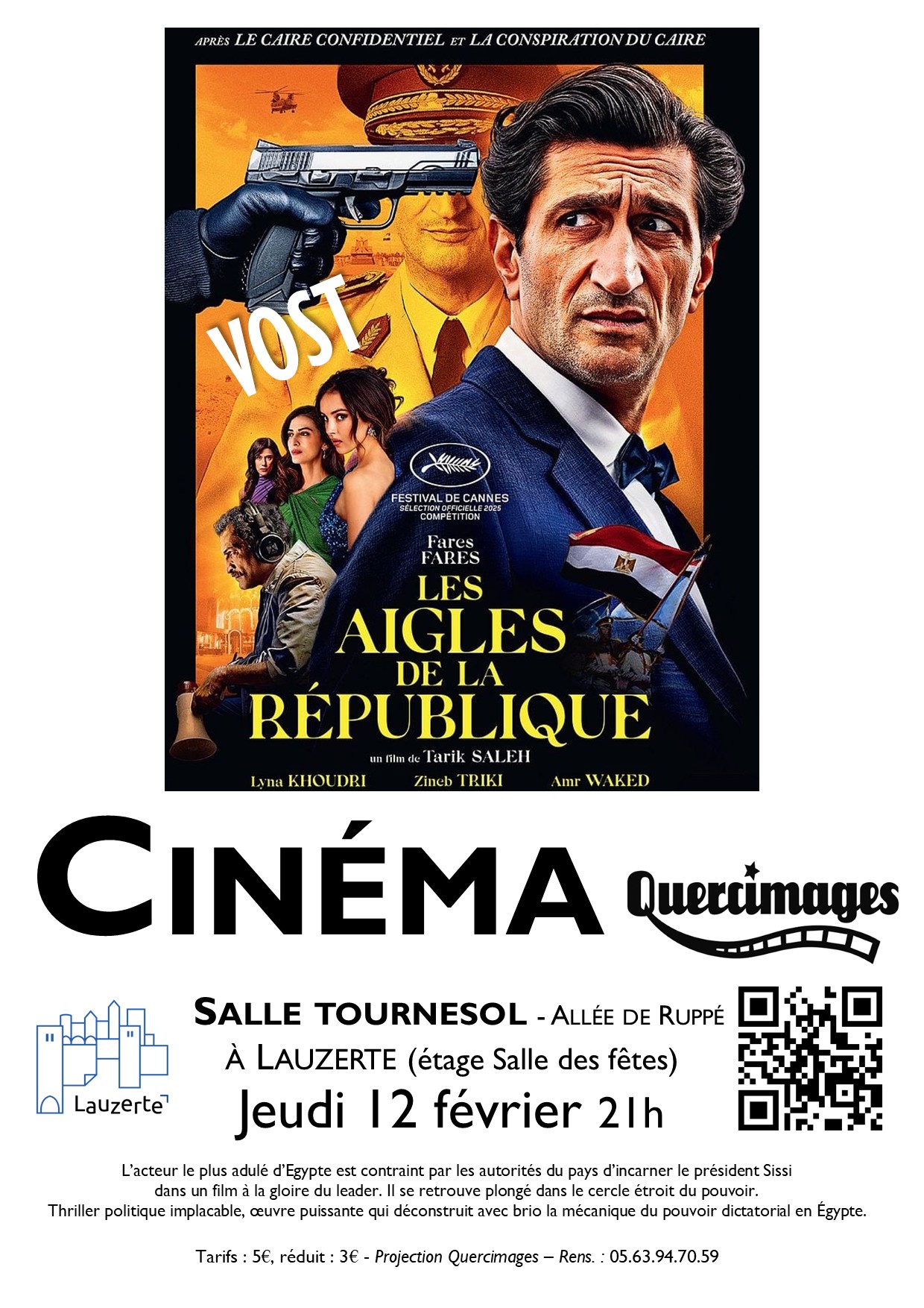 "Les Aigles de la République" il s'agit d'un film du réalisateur égypto-suédois Tarik Saleh, avec Fares Fares, Lyna Khoudri et Zineb Triki. Durée 2h09, sorti en salle en novembre 2025.