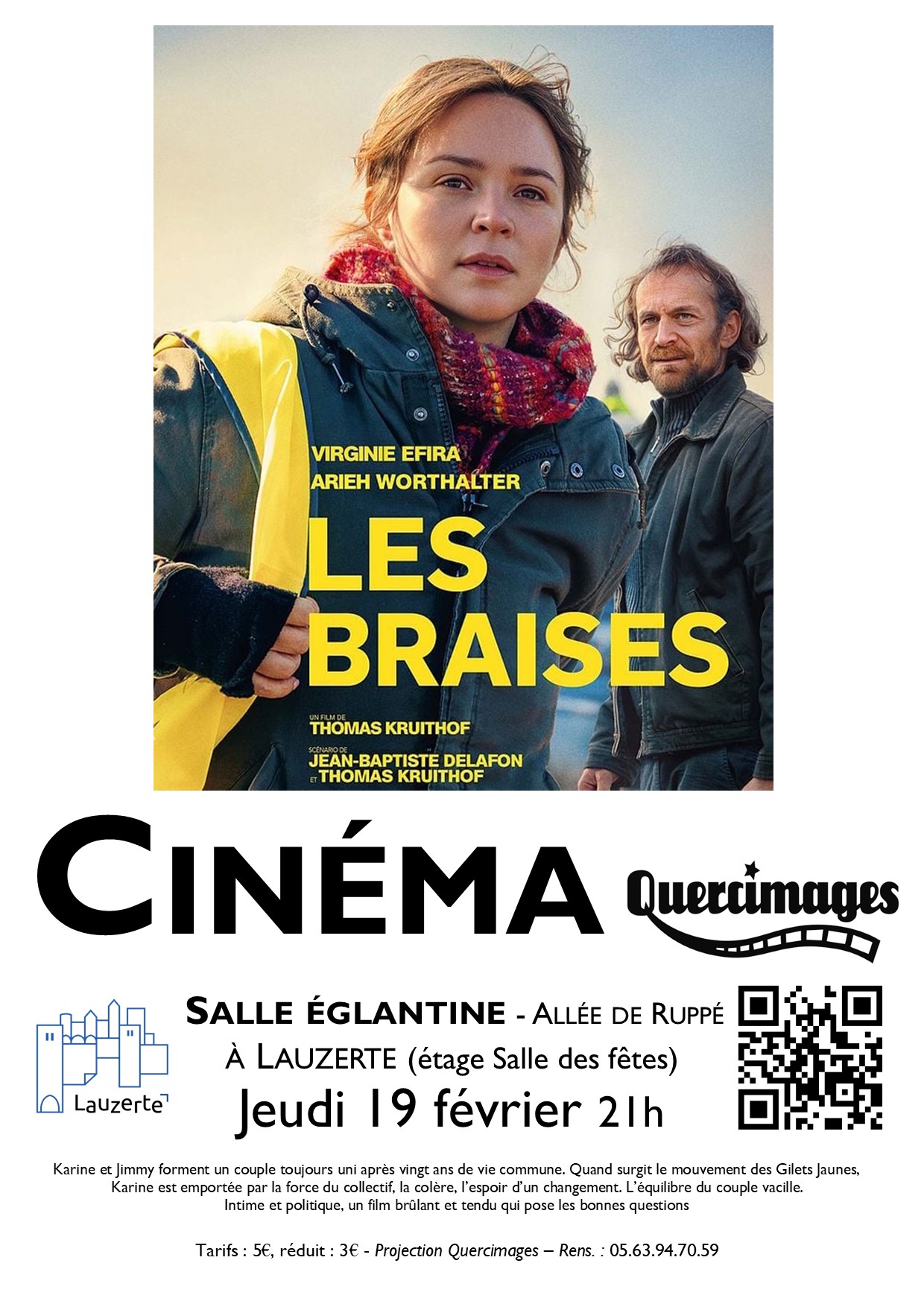 L'association Quercimages vous propose ses séances de cinéma à 21h00.Vos séances du jeudi soir sur Lauzerte se dérouleront désormais dans la salle Églantine, à l'étage de la salle des fêtes.