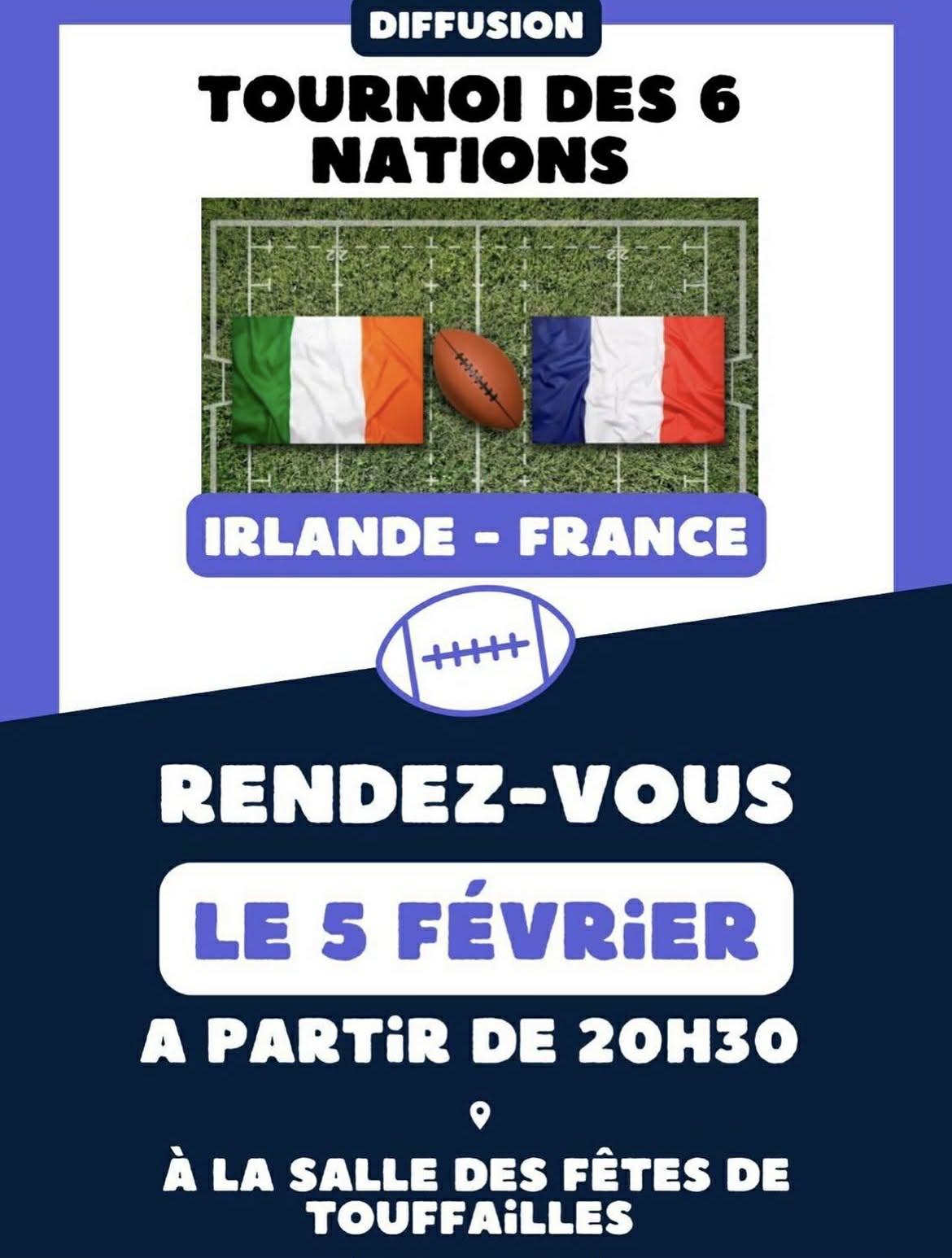 Diffusion du match Irlande - France du Tournoi des 6 Nations, à Touffailles