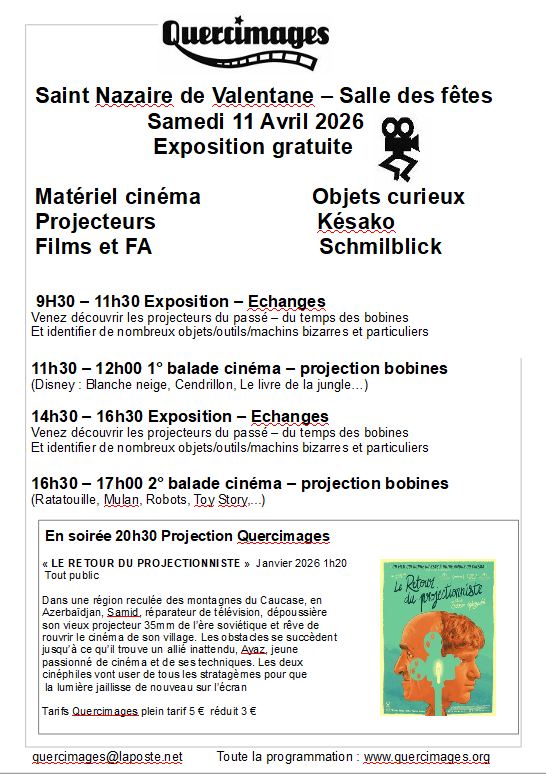 Venez découvrir une exposition sur le cinéma à la salle des fêtes de Saint-Nazaire-de-Valentane le Samedi 11 Avril