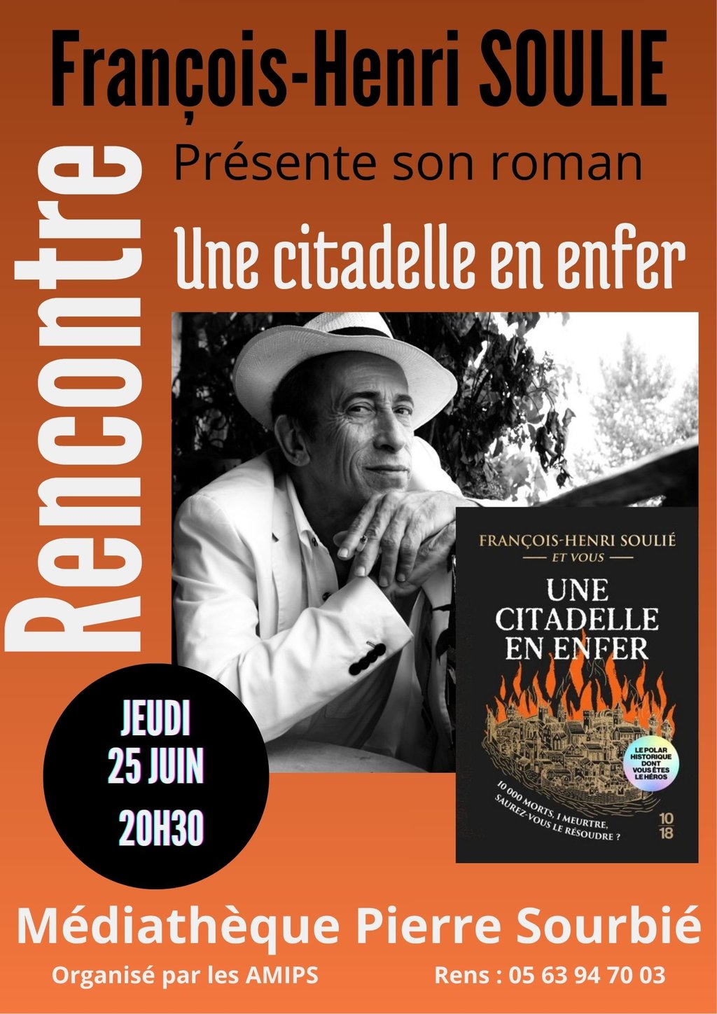 La médiathèque a le plaisir d'accueillir à nouveau François-Henri Soulié, un auteur désormais bien familier des lieux et très apprécié de son public. Fidèle à chaque sortie de roman, il revient cette année pour nous présenter son nouveau polar Une citadelle en enfer.