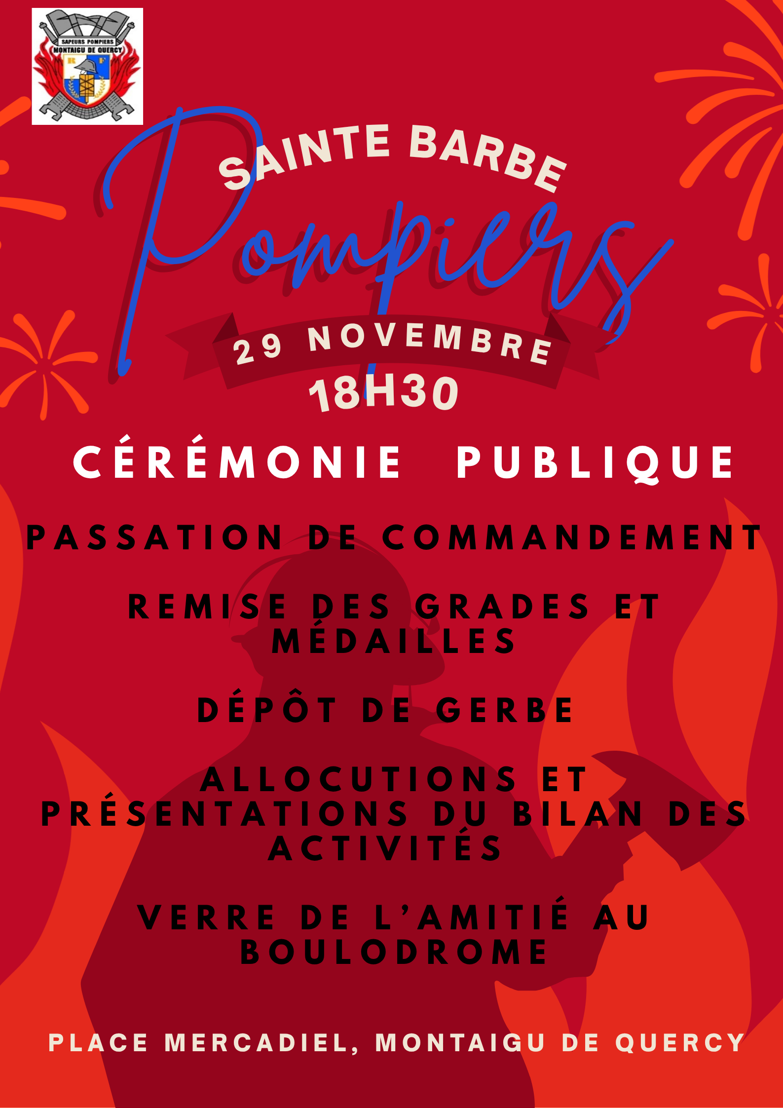 Sainte Barbe à Montaigu de Quercy, place Mercadiel à Montaigu de Quercy le 29 novembre, à 18H30