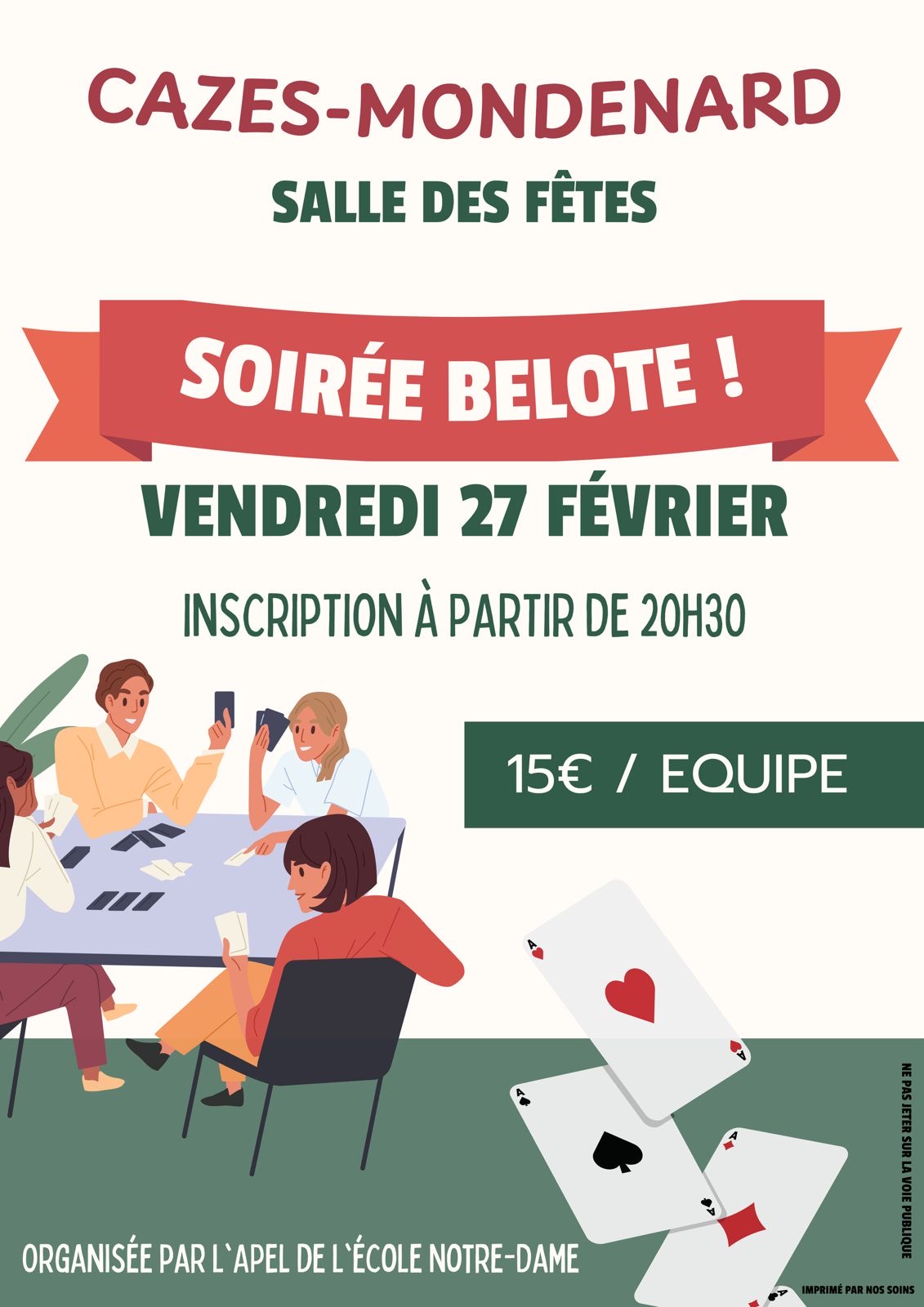 Soirée belote organisée par l'APEL de l'Ecole Notre Dame !
