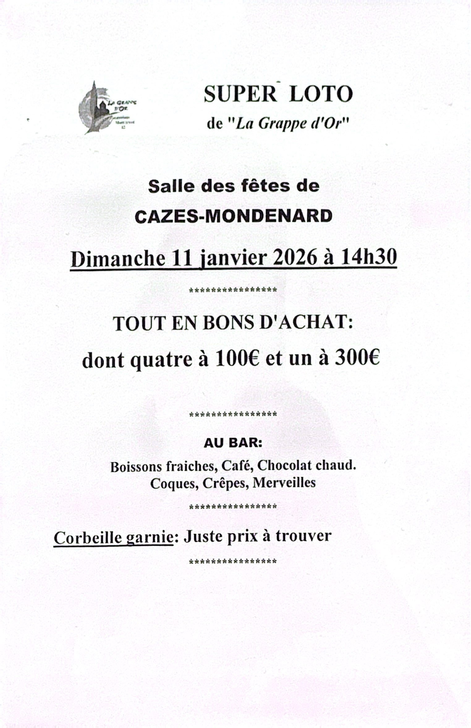 Super loto Salle des fêtes 82110 Cazes-Mondenard