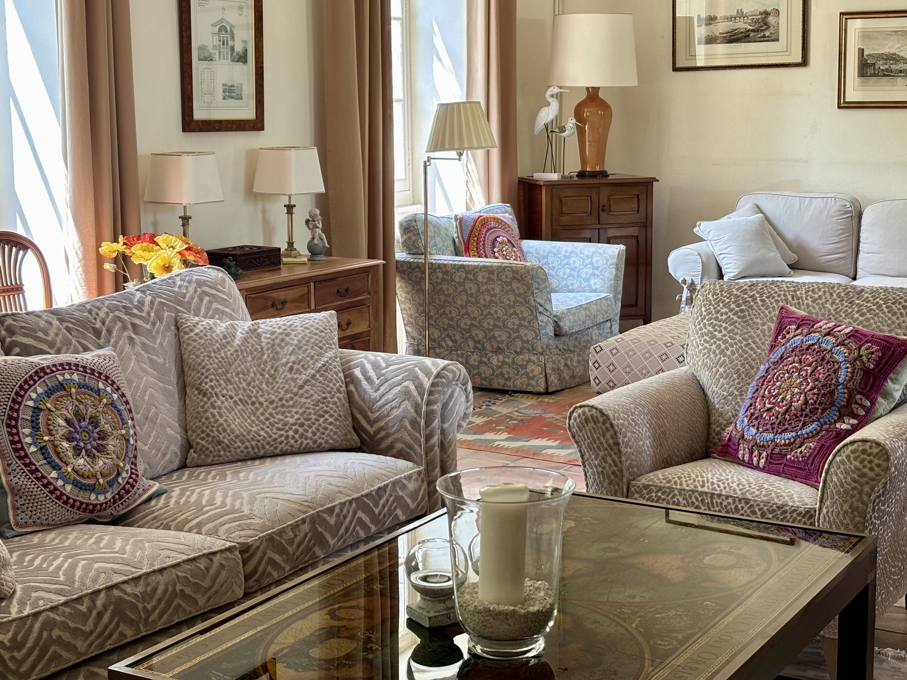 La maison est centrée sur un grand salon à double exposition avec une salle à manger adjacente et un coin salon avec télévision.