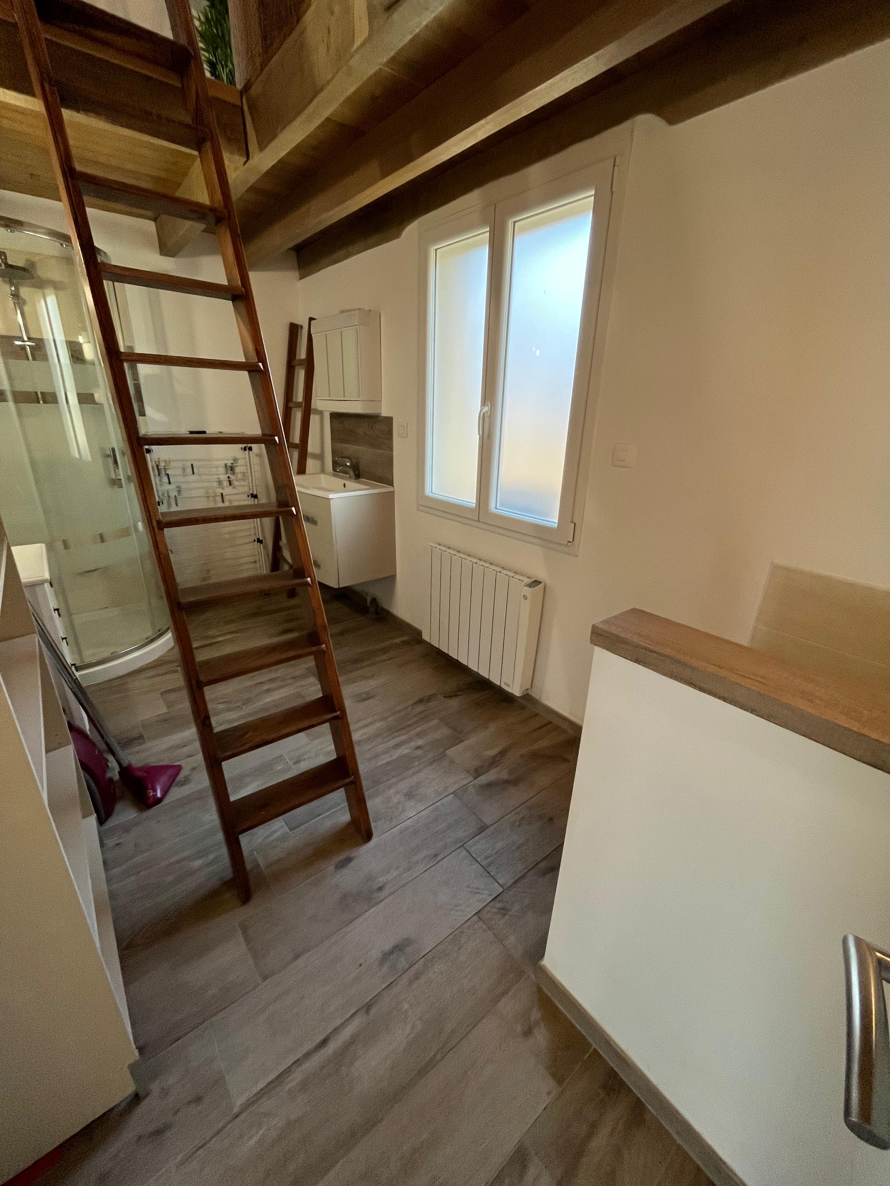 – chambre : 1 lit en 140 accès par une échelle de meunier.